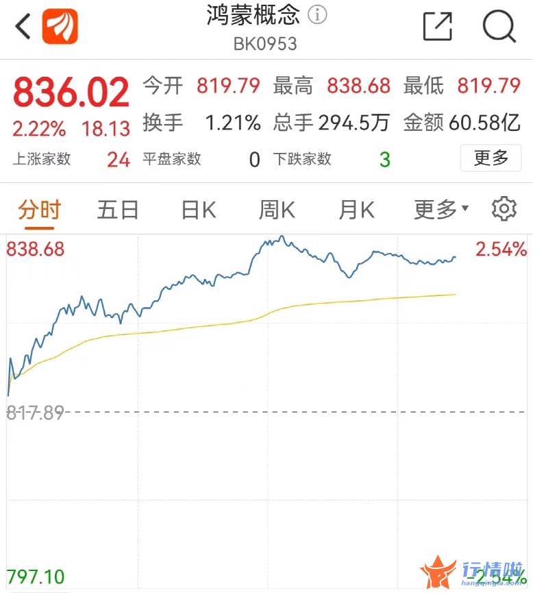 受此消息影响,今天鸿蒙概念版块开盘延续上涨,版块上涨幅度一度达2.53%。包含软通动力、润和软件(300339)、科蓝软件(300663)、四维图新(002405)等相关概念股均展现不同程度上涨幅度。机构估计,HarmonyOS 3的公布,今天11条股市要闻消息叠加华为军团化战略延续推进,整个鸿蒙产业链有望迎来催化。
