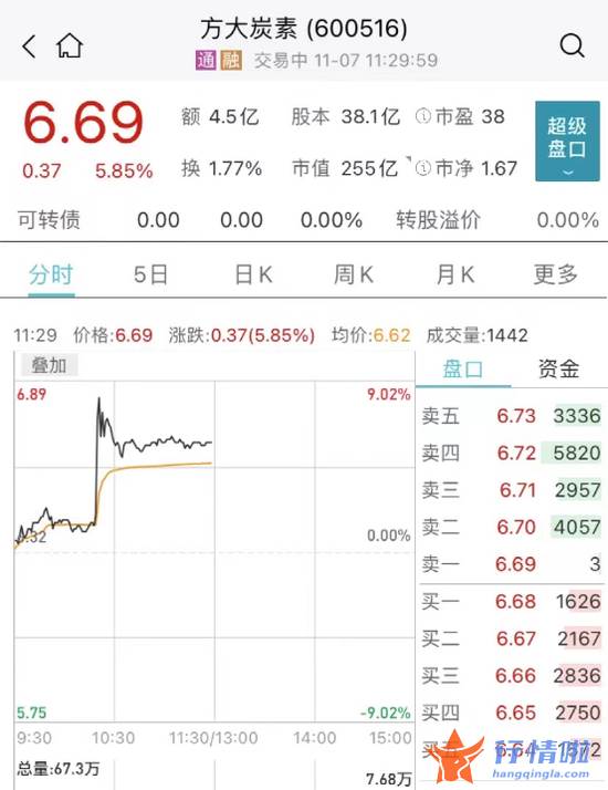 与此同时,石墨烯概念直线拉涨,方大炭素(600516)冲板,德尔未来(002631)、华丽家族(600503)、宝泰隆(601011)、星球石墨等快速拉升。